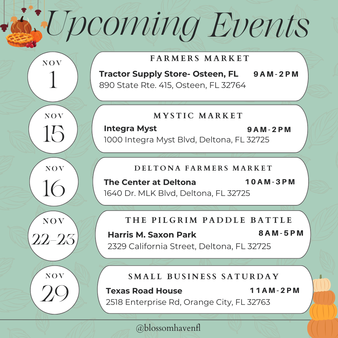 Mark your calendars and join us for an exciting lineup of markets, pop-ups, and events! Weβre all about creating memorable experiences and showcasing our finest products. Follow us on social media for updates, and let's make lasting memories together!